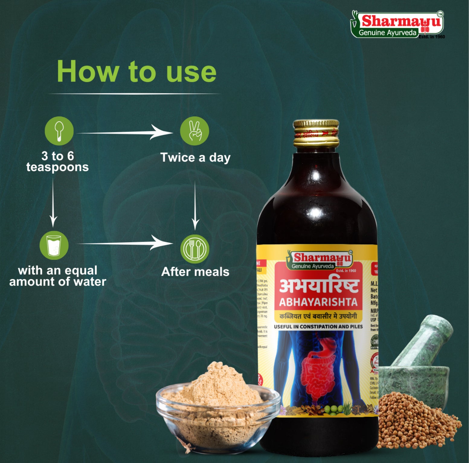 Abhayarishta is made using the wonderous herb Abhaya that helps in constipation and pile related problems. It works as a carminative, mild laxative and liver stimulant.