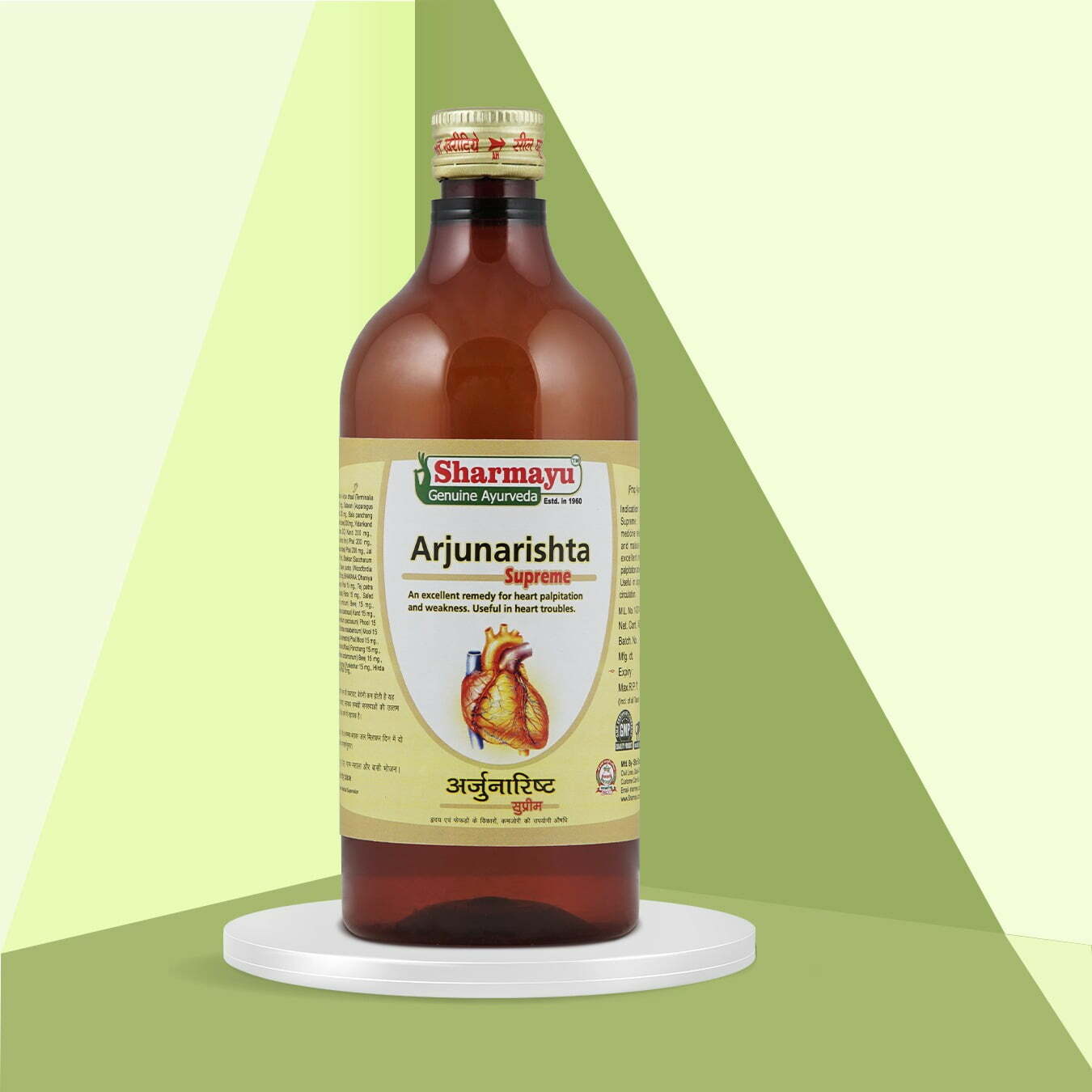 Arjunarishta is prepared with Arjuna to help restore normal cardiac functioning. It lowers the cholesterol level in the body and minimizes the symptoms of excessive sweating and restlessness.