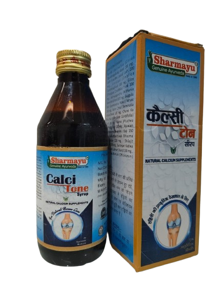 Asthi shrinkhla (Cissus Quadrangularis) Kand 200 mg., Lakh (Laccifer Lacca) Lakh, 200 mg., Amalaki (Emblica Cordifolia) Fruit 100 mg., Giloy (Tinospora Cordifolia) Trunk 100 mg., Ashwagandha (Withania Somnifera) Root 100 mg., Guggulu Ext. (Commiphora Mukul) Niryas 100 mg., Arjun Chhal (Terminalia Arjuna) Twak 100 mg., Chune Ka Pani, Nag Bala (Sida Cordifolia) Root 100 mg., Rasna (Pluchea Lanceolata) Leaf 100 mg., Ajawain (Trachyspermum Ammi) Baji 150 mg., Kukkuttandtwak Bhasma Formulation 100 mg., Shilajit (Niryas) 100 mg., Suranjan Kadwa (Colchicum Luteum) Kand 100 mg.. Sugar (Saccharum Officinarum) Q.S.