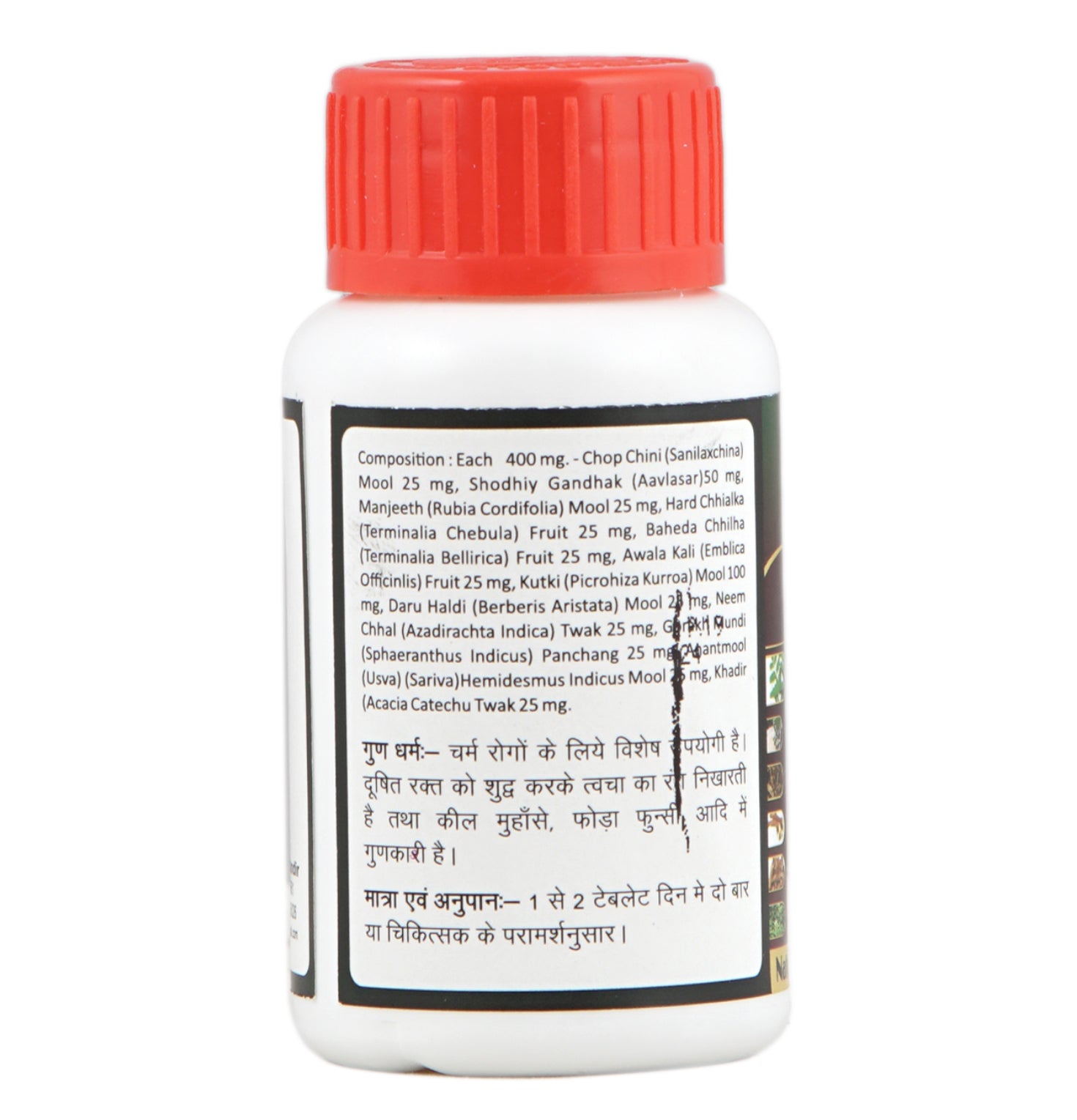 Indication: Particularly useful for skin diseases. Cleanses the blood by cleansing contaminated blood. Effective in pimples, boils, etc.