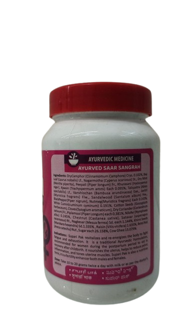 Indication: Supari Pak is very effective and confirmatory. Due to its use, the effervescence (leucorrhoea) that occurs in women is destroyed, and destroying the impurities of both men and women, helps them in the birth of children.